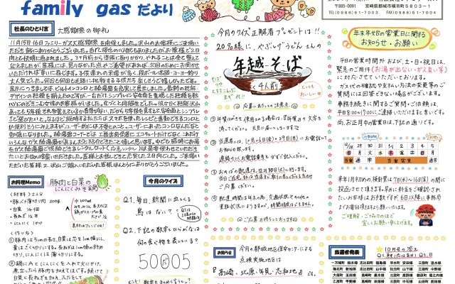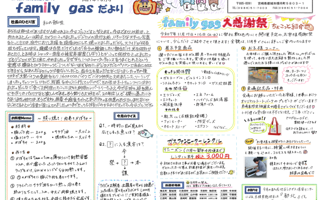 毎月発行!手書き新聞、ファミリーガス便り♪