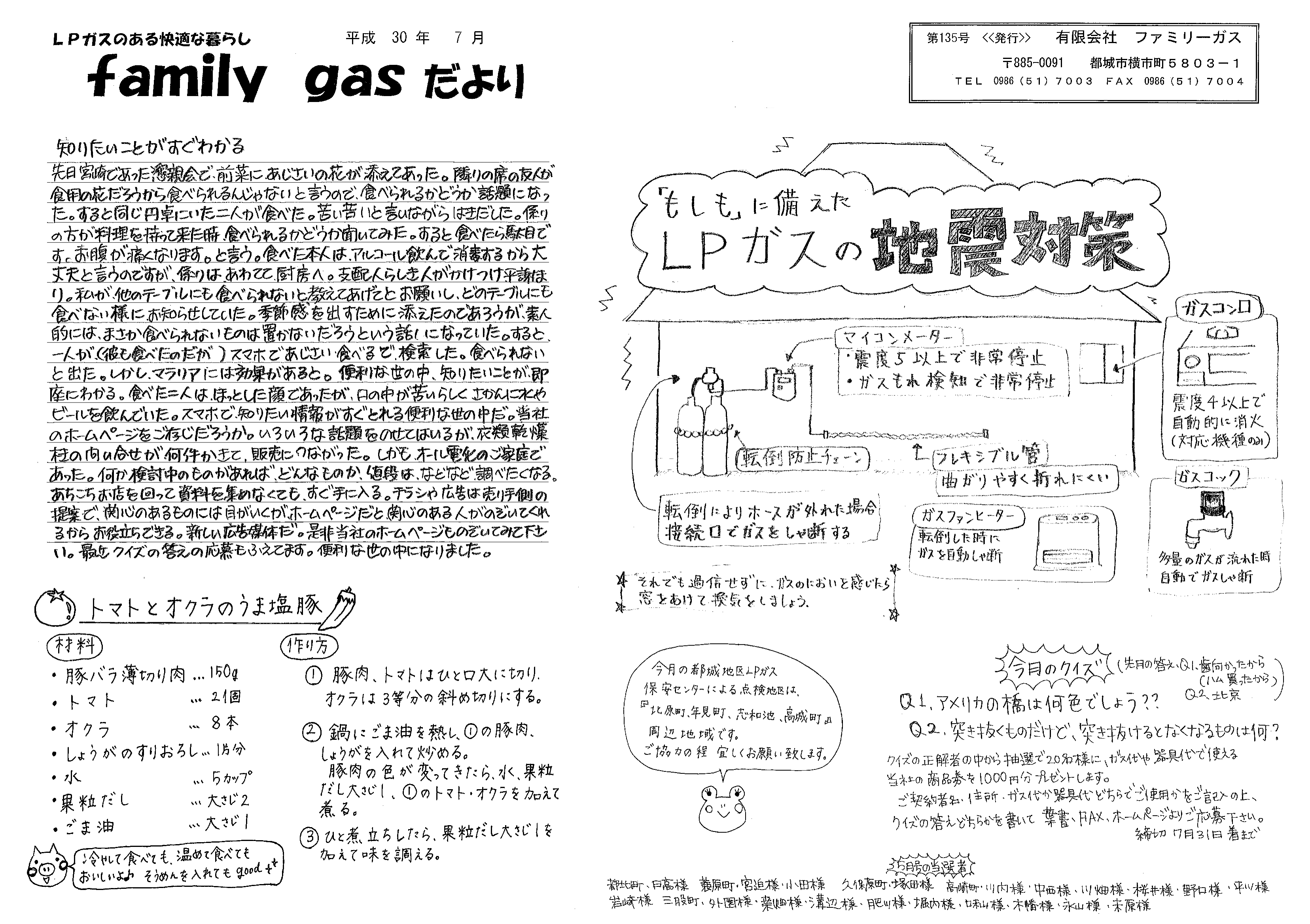 LPガスの魅力を伝える手書き新聞「ファミリーガス便り」を毎月発行しています。