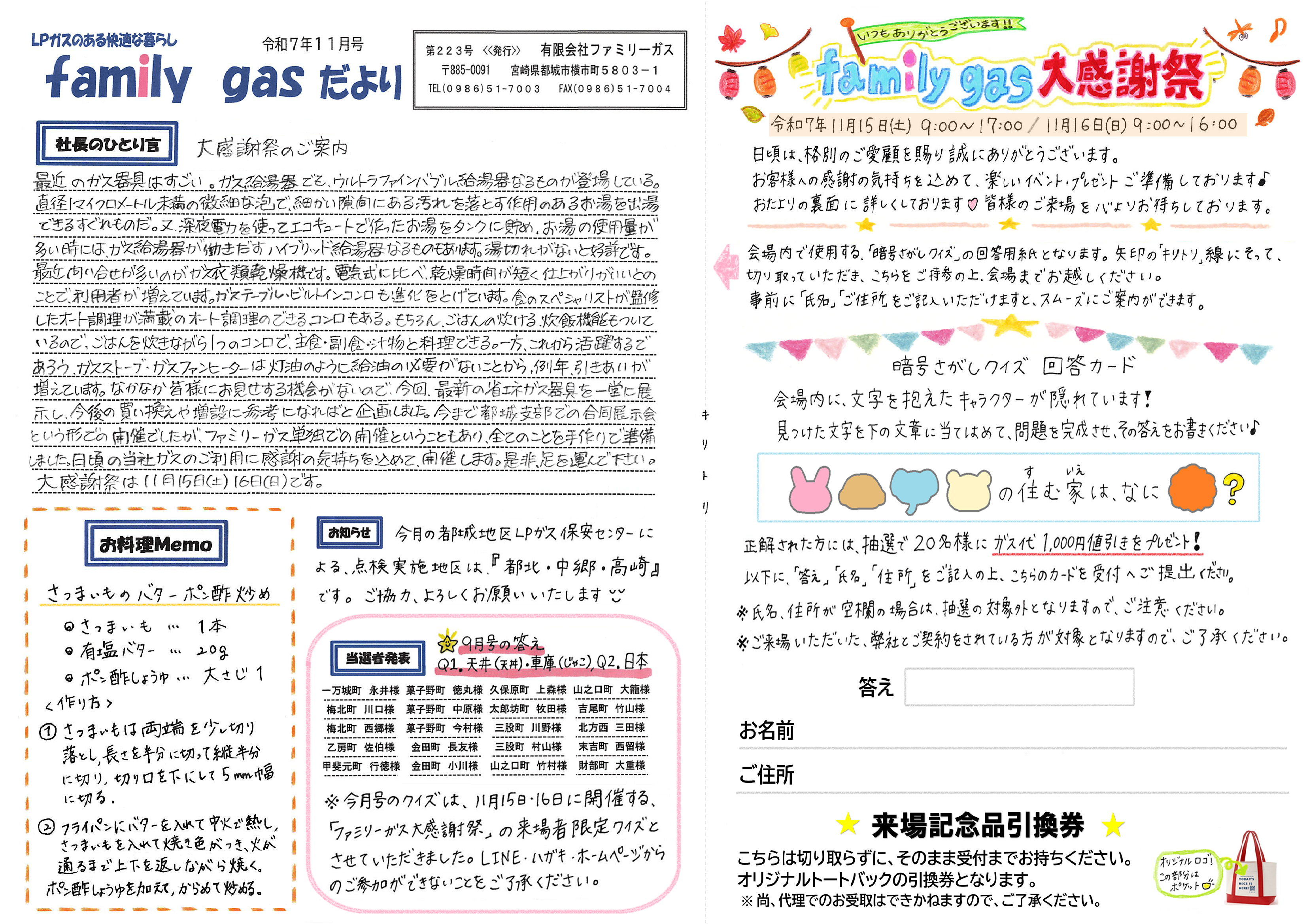LPガスの魅力を伝える手書き新聞「ファミリーガス便り」を毎月発行しています。
