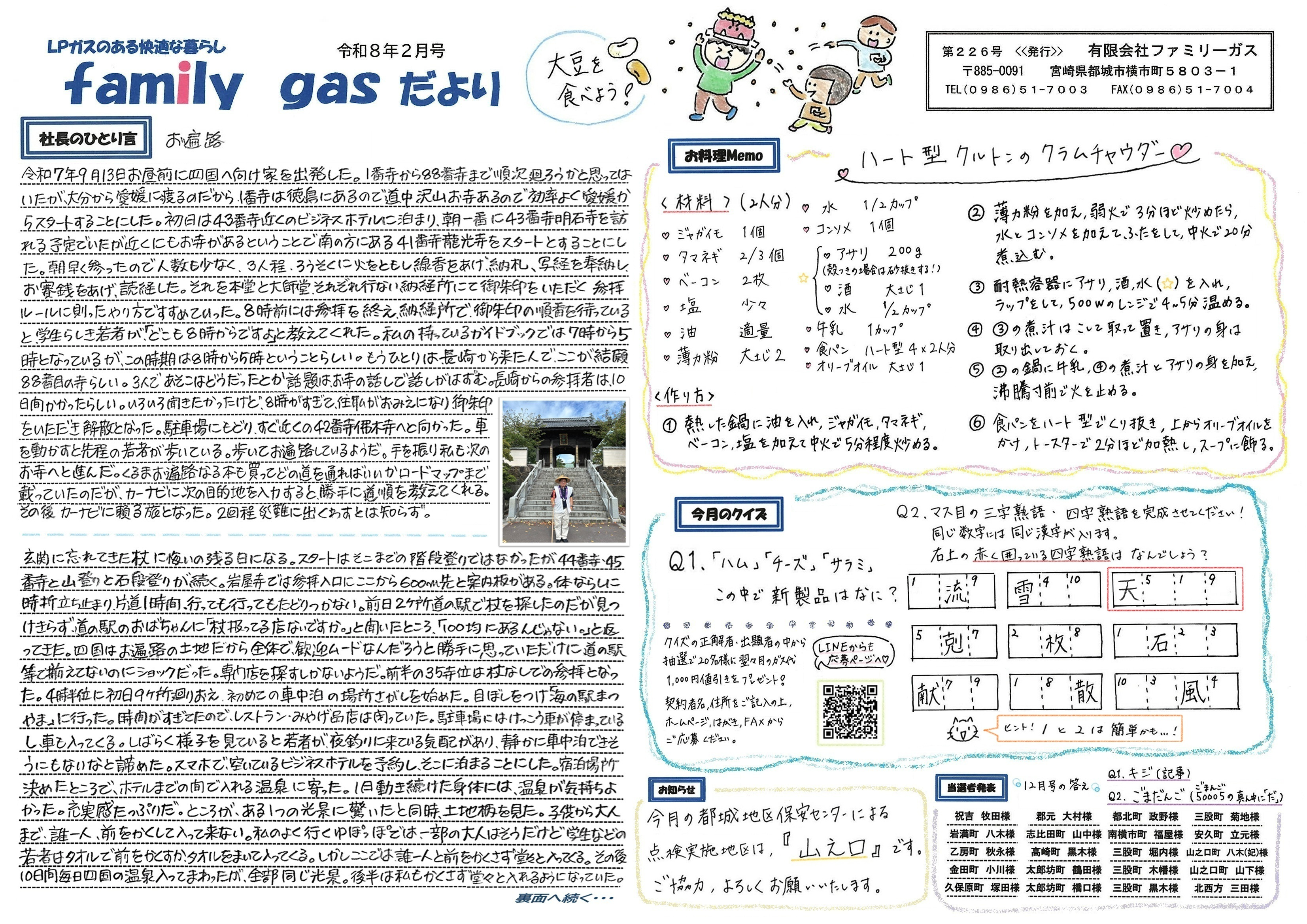 LPガスの魅力を伝える手書き新聞「ファミリーガス便り」を毎月発行しています。