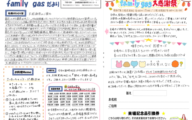 毎月発行!手書き新聞、ファミリーガス便り♪
